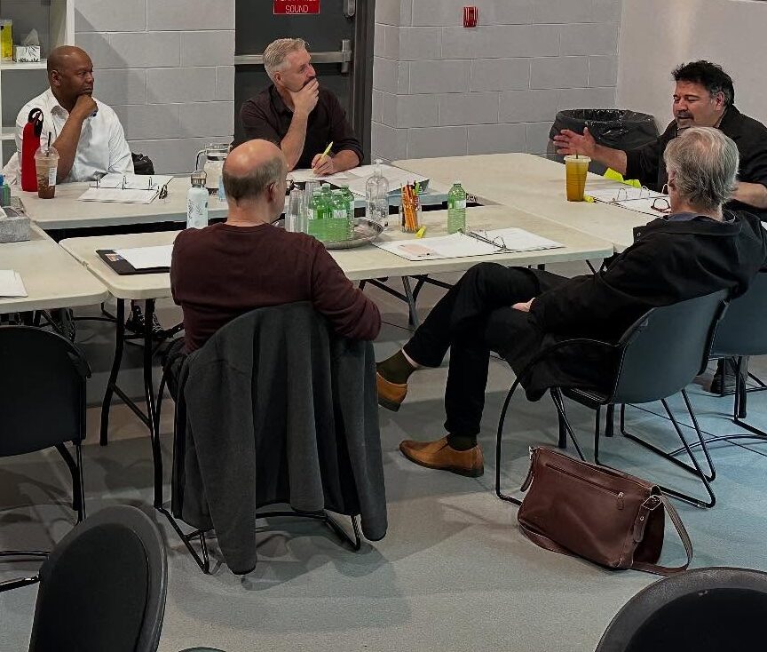 Theatre Aquarius executive director Mary Francis Moore and Piindigen program manager Danik Mc Afee led a five-hour workshop of Raymond’s play “What We Talk About When We Talk About Trump” on May 28 as part of the 2025 Brave New Works Festival, culminating in a free public reading of the play by Michael-Lamont Lytle, Patrick McManus, Juan Carlos Velis and Brandon Wall.